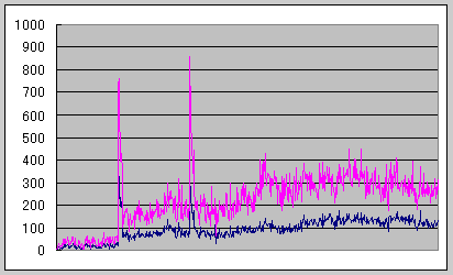 比較的安定して推移したという事は話題にする事も特にない事を意味するけれど、それでも、先日特別にグラフ化した正月近辺の凹み具合はやはり目に付くか。あれからちょっとしたらある程度回復したもんだから、結局何だったんだと思うと共に早い段階でネタにしといて良かったなあとも思っていたのであるが。